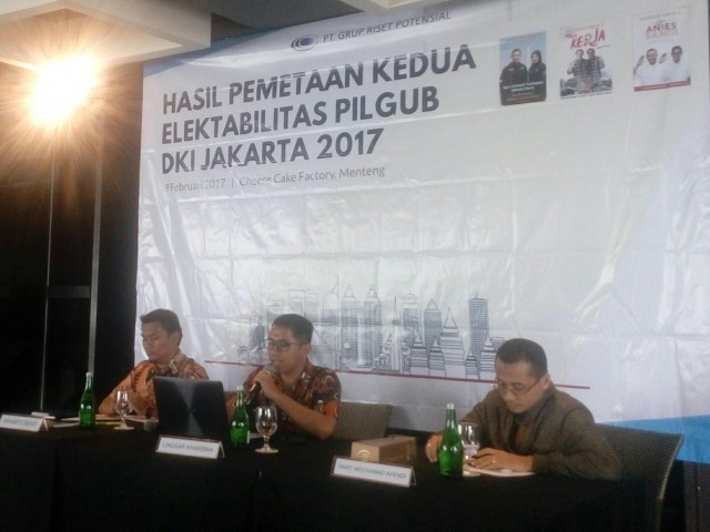"Berbeda dengan masa 2012 dan 2014 (Pilpres), menjelang Pilgub 2017 ini banyak penggusuran di wilayah-wilayah padat penduduk di Jakarta yang notabene merupakan basis para wong cilik," ujar IT and Technical Advisor PT GRP Farit M Afendi saat merilis hasil survei di Cheese Cake Factory Cikini, Jakarta Pusat, Kamis (9/2/2017).