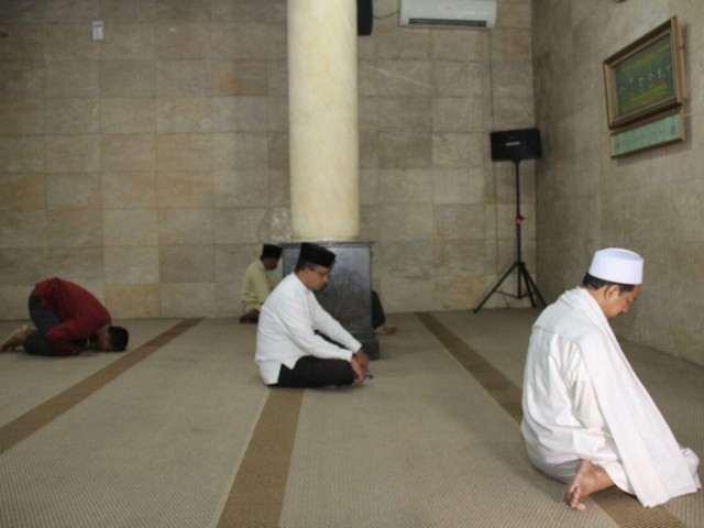 "Ayo salat dulu," ujar Anies saat memasuki masjid.