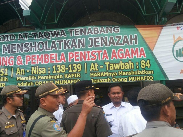 "Spanduk itu hanya pernyataan sikap dari pengurus masjid, tidak membujuk untuk tidak mensholatkan," ucap Ali.