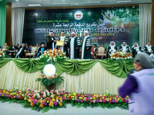 PATTANI, THAILAND (voa-islam.com)--Mantan Ketua Umum Pimpinan Pusat Muhammadiyah dan Ketua Dewan Pertimbangan Majelis Ulama Indonesia, Prof. Dr. M. Din Syamsuddin mendapat penghargaan gelar doktor kehormatan (Doktor Honoris Causa) dalam bidang Islamic Sciences dari Universitas Fatoni, Thailand, Ahad (26/3/2017).