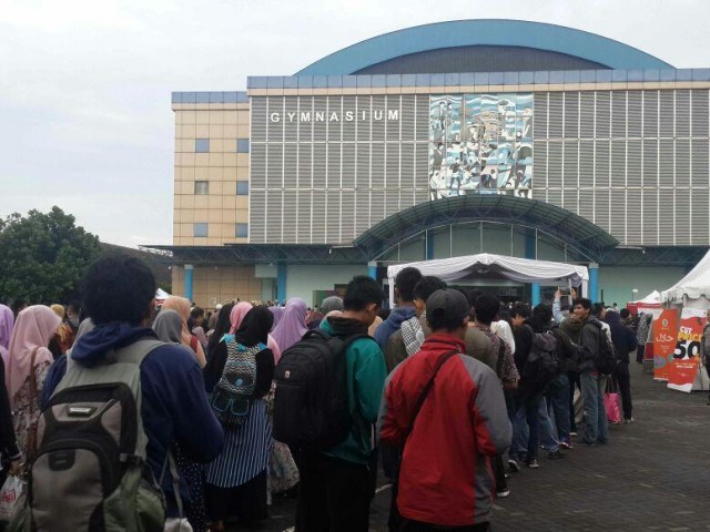 "Wah kalah ini nih antrian konser musik," celetuk salah seorang peserta di lokasi acara.
