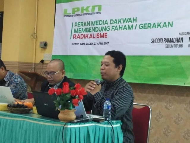 "Kita yang tahu harus menahan diri dan menyadarkan. Istilah jawanya mereka "Nabok nyilih tangan," ucap redaktur tabloid Suara Islam itu.