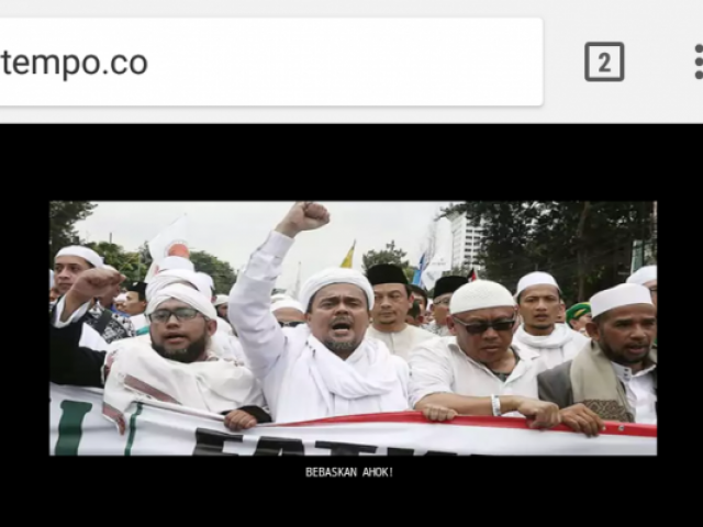 Laman media online Tempo itu tidak bisa menampilkan informasi sebagaimana mestinya dan terpampang foto Ketua FPI, Habib Rizieq Shihab, sedang melakukan orasi dengan tulisan "bebaskan Ahok" di bawah foto tersebut.
