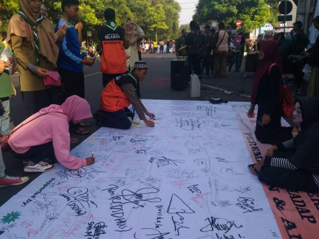 Kampanye Stop Kekerasa Terhadap Perempuan dan Anak yang di gelar di kawasan CFD jalan Slamet Riyadi Solo ini mendapat dukungan dari masyrakat. Tidak sedikit yang membubuhkan tanda tangan sebagai bentuk dukungan terhadap gerakan yang dilakukan PD NA Kota Surakarta. * [Aan/Syaf/voa-islam.com]