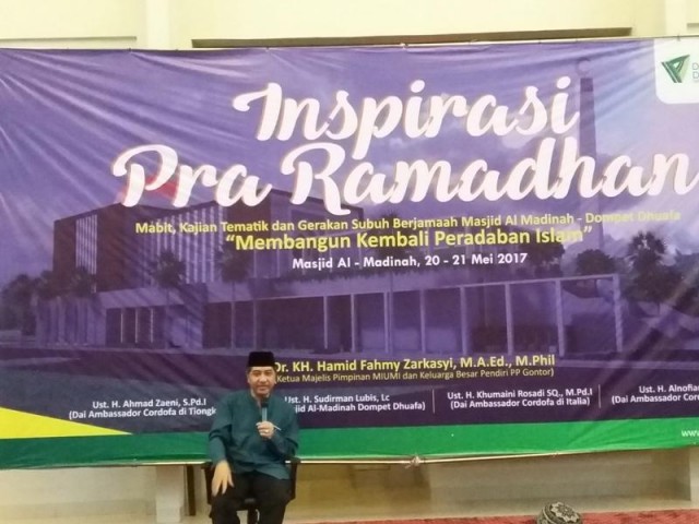 BOGOR (voa-islam.com)--Ratusan jamaah hadir dalam kajian bada Subuh masjid Al Madinah, Ahad (21/5). Kajian subuh kali ini spesial dengan hadirnya ustadz Dr. Hamid Fahmy Zarkasyi, M.A. Ed, M. Phil sebagai pembicara utama. Hamid Fahmy merupakan putra KH. Imam Zarkasyi, pendiri Pesantren Modern Gontor Ponorogo. Saat ini ia menjabat sebagai Pemimpin Redaksi Majalah ISLAMIA, Direktur Institute for The Study of Islamic Thought and Civilization (INSISTS), Ketua Majlis Intelektual dan Ulama Muda Indonesia (MIUMI), serta wakil rektor Universitas Islam Darussalam.