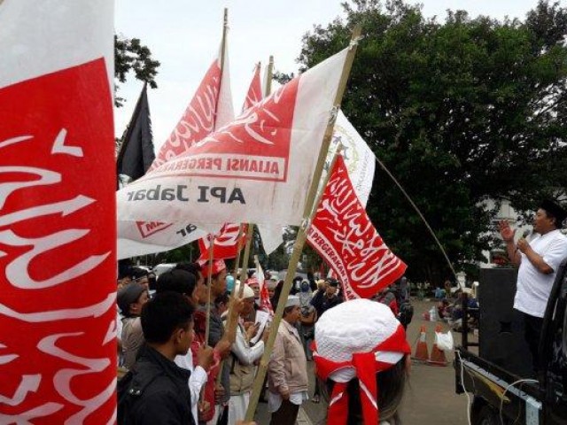 BANDUNG (voa-islam.com) - Aliansi Pergerakan Islam (API) Jawa Barat, melakukan aksi unjuk rasa Jumat (14/07) kemarin, di depan Gedung Sate Jalan Diponegoro, Bandung.