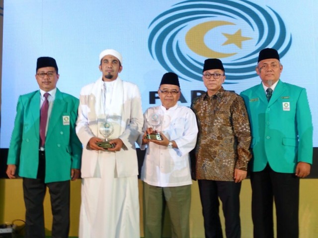 Pemberian Parmusi Award kepada Habib Rizieq diwakili oleh KH Shobri Lubis. Award tersebut diserahkan langsung oleh Ketua MPR RI Zulkfli Hasan kepada Shobri Lubis. (bilal/voa-islam)