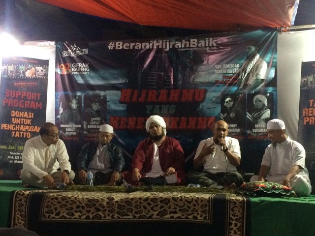"Allah tidak melihat manusia pada masa lalunya, bagi teman-teman yang sudah hijrah pertahankanlah dan terus berniat memperbaiki diri sendiri,"ucap Derry didepan sekitar 200 orang yang hadir di Garasi Hijrah, Jalan KPBD, Lapangan Perumahan Peruri, Kebon Jeruk, Jakbar, Sabtu malam (14/10).