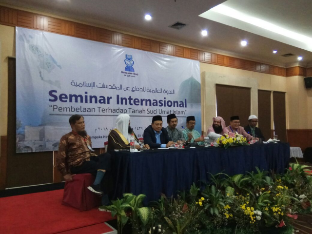 "Kita mengajak umat bersama-sama melakukan langkah-langkah konkret untuk membela dan melindungi tanah Suci penistaan," katanya dalam konferensi pers seminar internasional pembelaan tanah suci Islam di Grand Hotel Cempaka, Jakarta, Jumat lalu (6/7/2018).
