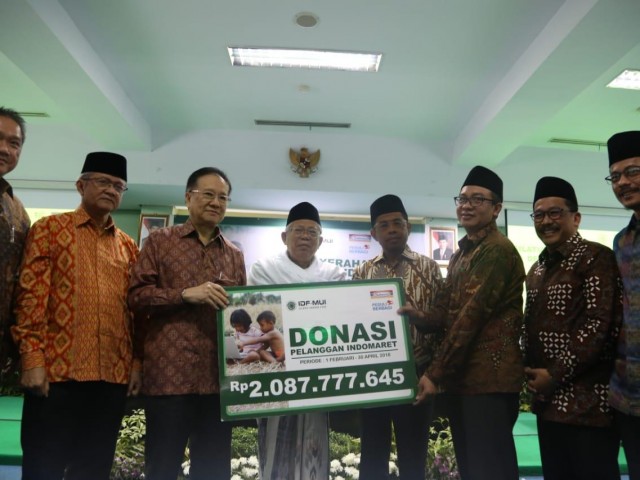JAKARTA (voa-islam.com)—Majelis Ulama Indonesia (MUI) mendapat bantuan donasi dari pelanggan PT Indomarco Prismatama atau Indomaret sebesar Rp2, 08 miliar. Penyerahan donasi dilakukan di Kantor MUI Pusat, Jalan Proklamasi 51, Jakarta Pusat, Selasa (17/7/2018).