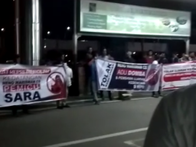 Kejadian sekitar Pukul 17.30 waktu Batam ini ternyata memang sudah disiapkan pendemo anti #2019GantiPresiden. Buktinya diluar Bandara sudah menghadang pendemo lain yang membawa spanduk dan hendak mengusir Neno Warisman.