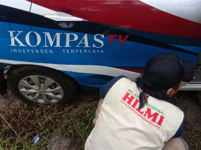 Tak dijelaskan kapan dan di mana kejadian relawan Hilmi membantu mobil Kompas TV. “Inilah yang kami lakukan untuk mereka, tanpa harus mengharap imbalan masuk ke media mereka. Karena kami punya peduli,” tulis akun @hilmi_fpi.