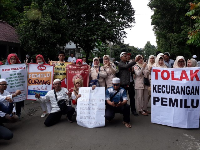 Aksi yang dihadiri ratusan massa tersebut digelar di depan Kantor KPUD Kota Bogor setelah pelaksanaan Shalat Jumat, 3 Mei 2019.