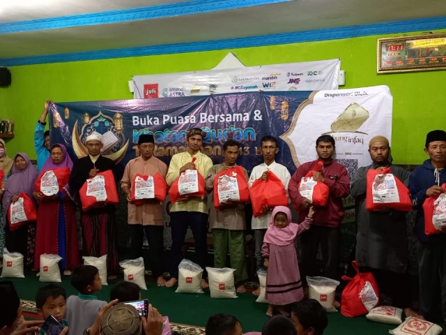 Penyaluran paket pangan dibarengi dengan pembinaan mualaf dan buka puasa bersama. Kegiatan yang dihadiri 200 jamaah ini diawali dengan pembacaan Alquran oleh para santri TPA Masjid Al Hikmah.
