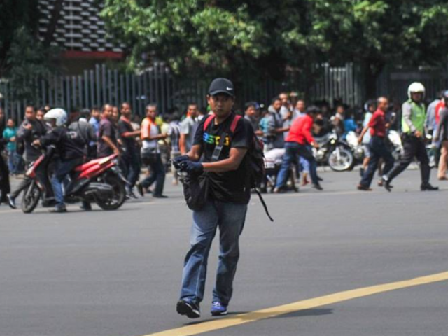 JAKARTA (voa-islam.com) - Dalam linimasa yang berseliweran di instant messaging Whatsapp terungkap foto yang diduga pelaku penembakan dan peledakan dalam aksi bak film action, Kamis pagi (14/1) didepan Sarinah, Jl Thamrin Jakarta.