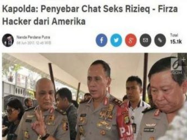 Sebagaimana diberitakan, pihak Kepolisian mengatakan bahwa penyebar konten chat seks antara HRS dan FH berasal dari kelompok peretas atau hacker yang mengatasnamakan diri sebagai anonymous. Berdasarkan hasil penelusuran penyidik diketahui bahwa domisili penyebar awal konten mesum itu di Amerika Serikat. Penyebaran konten chat seks oleh kelompok peretas yang berlangsung secara masif dan ofensif ini merupakan salah satu bentuk perang asimetris (proxy war) yang dilakukan oleh nonstate actor.