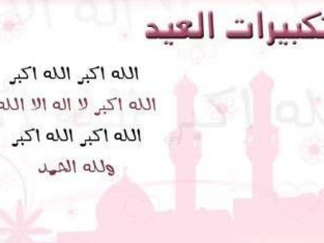 اَللهُ أَكْبَرُ . . اَللهُ أَكْبَرُ . . اَللهُ أَكْبَرُ . . لاَ إِلَهَ إِلاَّ اللهُ ، اَللهُ أَكْبَرُ . . اَللهُ أَكْبَرُ . . اَللهُ أَكْبَرُ . . وَلِلَّهِ الْحَمْدُ