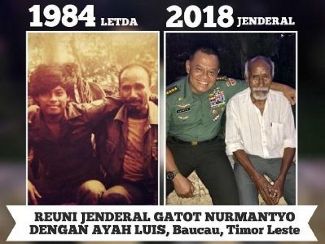 JAKARTA (voa-islam.com)- Cukup lama tidak tampil di public, Jendral Gatot Nurmantyo kini nampak sibuk jalan-jalan, salah satunya dengan menjamah kembali kenangannya di daerah yang kini tidak lagi milik Indonesia, yakni di Dili, Timor Leste. Gatot di sana menemui seseorang yang dianggapnya menjadi salah satu kenangan sewaktu dia jauh seperti sekarang ini.