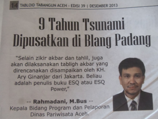 BANDA ACEH (voa-islam.com) – Rencana Pemerintah Aceh mengundang Ary Ginanjar pelatih ESQ untuk memimpin zikir pada 26 Desember 2013 di lapangan Blang Padang harus dipertimbangkan ulang.