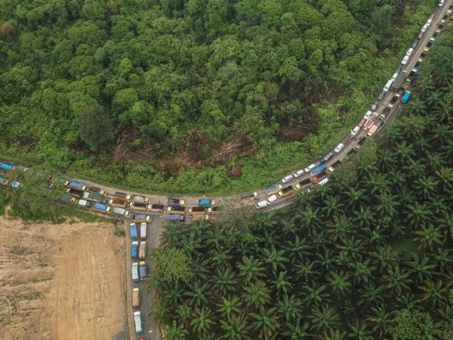 Kini kasus kemacetan bukan lagi menjadi hal yang lumrah di jantung ibu kota negara, Jakarta namun kemacetan sudah hampir menjadi kebiasaan dikota manapun di Indonesia. Namun apa jadinya jika orang yang terjebak macet memakan waktu hingga 22 jam dengan panjang kemacetan 15 Km. Ini terjadi di Jambi mulai tanggal 28 Februari hingga 1 Maret lalu, terlihat dalam tangkapan kamera kemacetan terjadi oleh ribuan mobil truk yang memadati jalan Nasional Jambi.