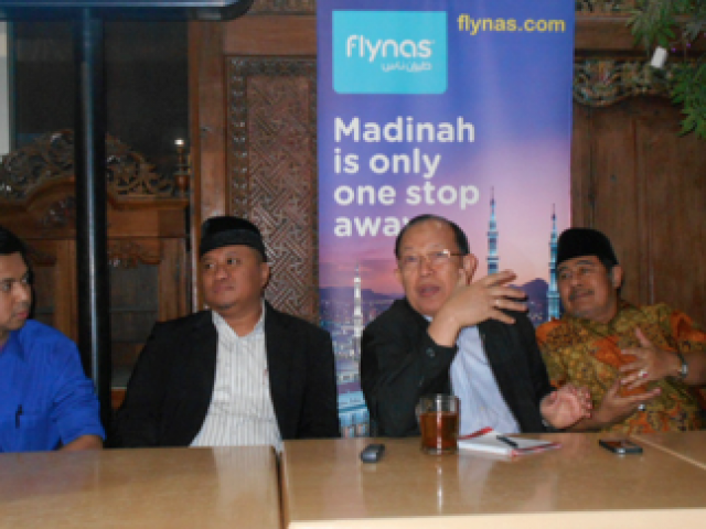 “Bila pemerintah Indonesia memberikan kepercayaan kepada Flynas pada musim haji tahun depan, kami siap membawa jamaah haji regular dari Indonesia,” ujar Raja Azmi di Bandara Soetta, Senin (15/9). Turut mendampingi Budi Firmansyah (Sekjen Amphuri) dan Hafidz Taftazani (Ketua Asbihu NU).
