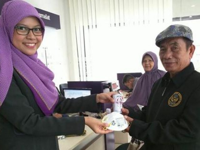 Sebagai upaya membantu masyarakat yang terkena kabut asap, Baitulmaal Muamalat (BMM) memberikan bantuan berupa masker dan minuman bervitamin, Senin 21/9/2015. Masker NH 59 sebanyak 1000 buah itu diberikan kepada masyarakat melalui Bank Muamalat Cabang Jambi.
