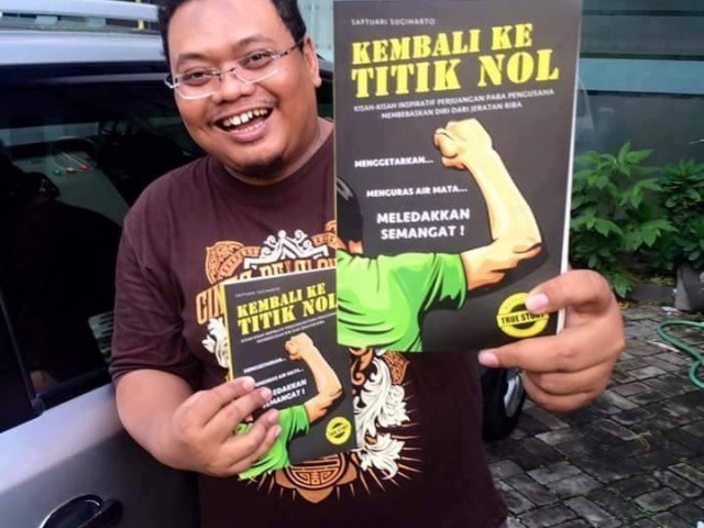 Apalagi baca tulisannya di Fb maupun di media sosial lainya memang sangat segar dan sangat mempesona. Tekat bulat dalam hati serta kegigihan untuk meninggalkan riba, akhirnya mengantarkan dirinya menelurkan sebuah buku yang fenomenal yang laris di pasaran. Yah buku itu berjudul “Kembali ke Titik Nol”