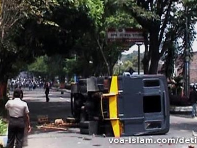 21. Setelah terjadi negosiasi antara pimpinan massa dan polisi akhirnya pemilik motor diperbolehkan mengambil motor. Namun mereka terlebih dahulu dipukuli dan diambil gambar motor dan pemiliknya. Saat itu polisi juga bertakbir dan berkata : “Polisi juga Islam”. Takbir dilafazkan secara cengengesan sambil memukuli massa yang kelihatan mempunyai jenggot.