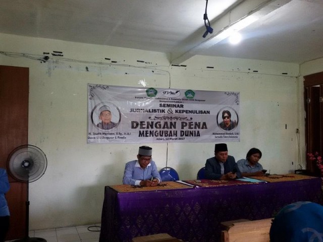 DENPASAR (voa-islam.com) – Forum Penulis Mahasiwa Sekolah Tinggi Agama Islam Denpasar (FPM STAI) menggelar seminar jurnalistik dan kepenulisan dengan tema “Dengan Pena Mengubah Dunia” pada Ahad beberapa waktu yang lalu, di Aula Lantai 2 Gedung STAI Denpasar Jalan Cargo, Denpasar, Bali.