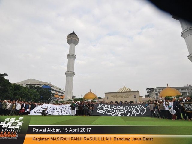 BANDUNG (voa-islam.com) - Alhamdulillah, walaupun para pendengki Islam menghadang, HTI Jawa Barat sukses menyelenggarakan rangkaian acara Masirah Panji Rasulullah shallallahu ‘alaihi wa sallam, pada Jumat-Sabtu (14-15 April 2017). Semuanya semata atas nikmat dan pertolongan Allah Subhanahu wa ta’ala. Rangkaian acara di Jawa Barat sangat heroik dan penuh keharuan karena berbagai hambatan sebelumnya sempat menghadang agenda dakwah ini. Rayah (panji) dan Liwa’ (bendera) Rasulullah akhirnya dapat berkibar dengan perkasa di atap langit Jawa Barat.