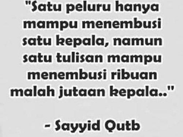 Sebagaimana yang dikatakan Sayyid Qutb. “ Satu peluru hanya mengenai satu kepala. Tapi satu tulisan bisa mengenai ribuan kepala”.