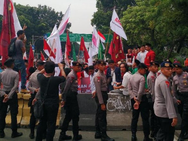 2. Masa aksi dari HMI berada pada posisi paling depan sebelah kiri jalan merdeka barat.