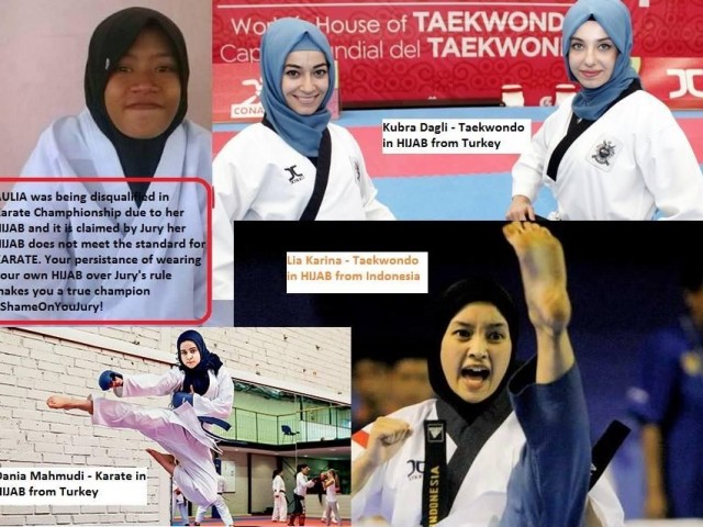 “Tidak benar bila dalam pertandingan karate ada larangan memakai hijab. Boleh-boleh saja asal warnanya hitam,” jelasnya saat saya hubungi via telpon.