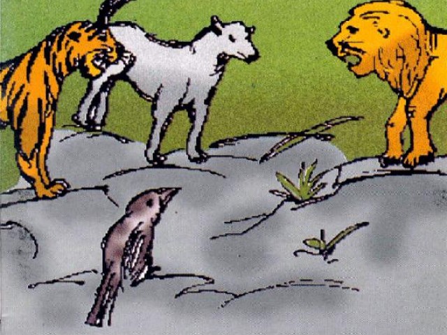 Alhasil dalam waktu singkat pecahlah perang antara singa yang sengaja ia benturkan dengan harimau. Dasar si harimau gampang emosi disulut sedikit saja dengan aduan si srigala langsung naik pitam. Srigala mengatakan bahwa singa akan menguasai wilayahnya dengan menyebarkan ide-idenya yang memang menarik banyak simpatisan dari negeri abal-abal.