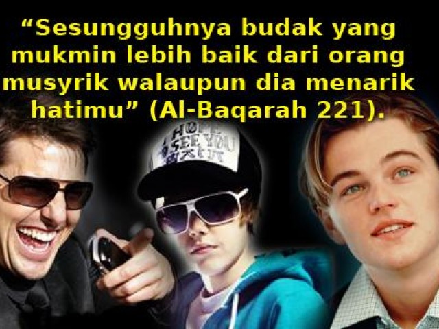 Disebutkan dalam surat At-Taubah 30-31 bahwa seorang budak yang hitam legam tapi beriman jauh lebih baik daripada orang kafir meskipun wajahnya rupawan. Udah deh, nurut sama petunjuk Allah ini dijamin bahagia dunia akhirat. Betapa banyak mereka yang mempunyai pendamping berwajah rupawan tapi keluarganya malah hancur berantakan. Inilah akibatnya apabila sebuah amal tidak dilandasi dengan ketakwaan tapi hanya berdasar hawa nafsu semata.