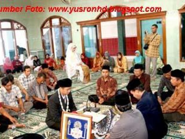 Jawaban: "Perkara dalam melangsungkan akad nikah di masjid dan tempat selainnya dalam tinjauan syar'i adalah luas. Tidak ada dalil satupun yang pasti –yang kami ketahui- untuk melangsungkannya di masjid secara khusus sebagai sunnah. Maka mengharuskannya pelaksanaannya di masjid adalah bid'ah. (Syaikh Abdul Aziz bin Baz, Syaikh Abdul Razzaq 'Afifi, Syaikh Abdullah bin Ghadiyan/ Fatawa Lajnah daimah: 18/110-111)