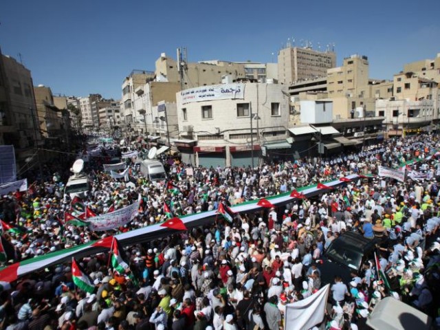 Pada hari Jumat, ribuan demonstran meneriakkan "tidak ada kedutaan Zionis di tanah Arab" berkumpul di dekat sebuah masjid di distrik Rabia dari ibukota Yordania dekat dengan kedutaan besar Israel.