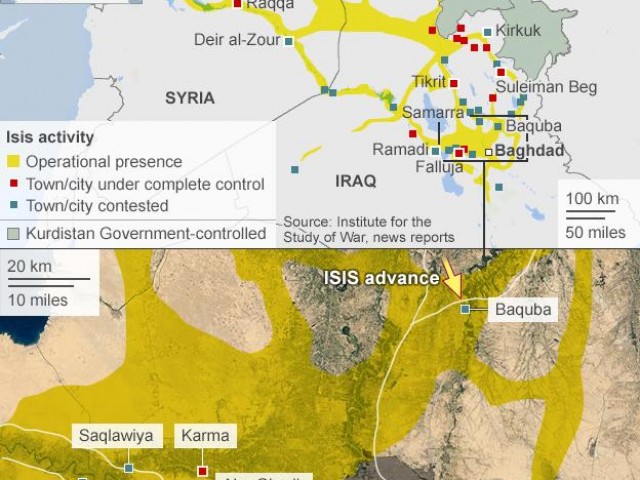 Sejumlah laporan menyebutkan sebagian dari kota Baquba -hanya sekitar 60km dari Baghdad- sudah dikuasai mujahidin.