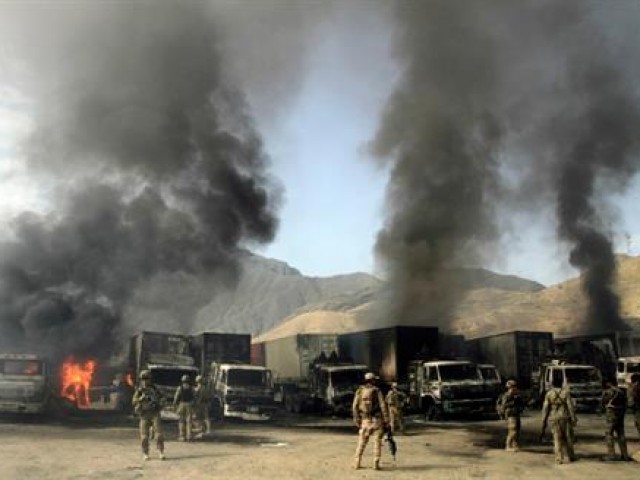 Serangan itu terjadi di kompleks parkir sebuah pangkalan NATO di dekat persimpangan Torkham di perbatasan Pakistan, dekat Khyber Pass dan rute pasokan utama bagi pasukan NATO pimpinan Amerika di tanah-terkunci Afghanistan.