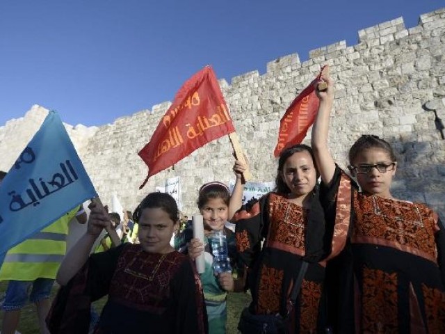 YERUSALEM, PALESTINA (voa-islam.com) - Warga Palestina pada Kamis (26/6/2014) berpawai di jalan-jalan Yerusalem Timur dengan mengenakan pakaian tradisional dalam sebuah festival untuk menyambut bulan suci Ramadhan.