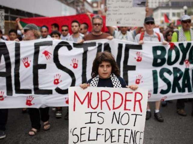 Sekitar 500 pengunjuk rasa berbaris pada hari Sabtu (26/7/2014) melalui ibukota menuju  Parliament Hill, menyuarakan kemarahan mereka pada Harper dan menyerukan untuk mengakhiri perang Zionis Yahudi di Gaza.