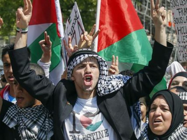 "Kami di sini untuk menyatakan dukungan penuh kami untuk perlawanan Palestina dan mengecam pemerintah memalukan ini (Presiden Prancis Francois Hollande) yang mendukung penjahat Zions-Israel," kata Omar Alsoumi, Pemimpin Gerakan Pemuda Palestina di Paris.