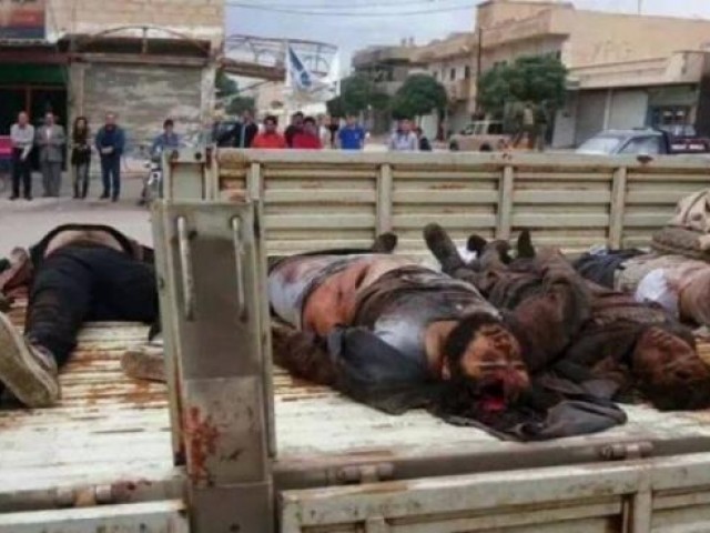 Saksi mata yang dikonfirmasi Zaman al-Wasl mengatakan bahwa milisi Kurdi menunjukkan mayat anggota IS (ISIS) yang terbunuh diarak di dalam mobil berkeliling kota Ras al-Ayn dan Amoda.