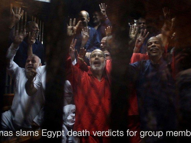 Juru bicara Hamas Sami Abu Zuhri menggambarkan sebagai keputusan pengadilan "menyedihkan" terhadap 106 orang terdakwa, termasuk dua anggota Hamas, yang diajukan kepada mufti agung, sebagai otoritas atas tertinggi Islam di Mesir, untuk mempertimbangkan hukuman mati mungkin melawan mereka.