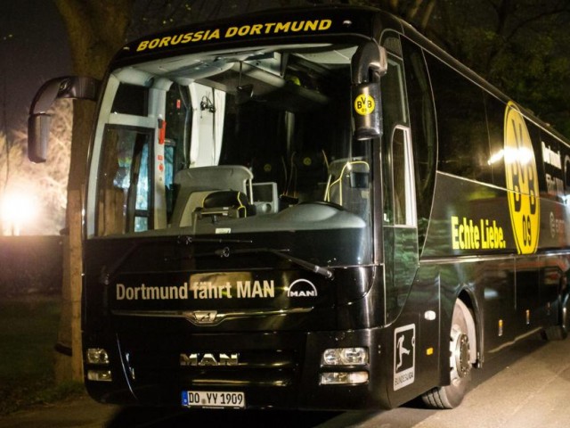 Tiga bom yang mengandung potongan-potongan logam diledakkan beberapa menit setelah bus meninggalkan hotel tempat tim menginap untuk pertandingan Liga Champions melawan AS Monaco.
