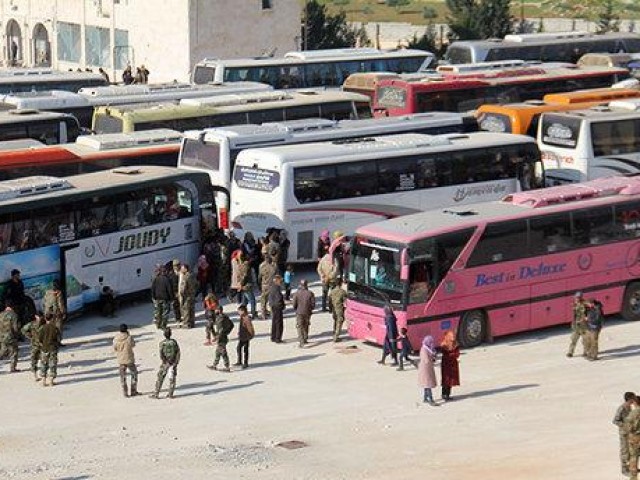 Bersamaan dengan itu, 11 bus yang membawa lebih dari 300 pengungsi dari kota Sunni yang dikepung rezim-dekat Damaskus sedang dalam perjalanan mereka menuju Idlib, yang sebagian besar dikuasai oleh oposisi, menurut Observatorium.