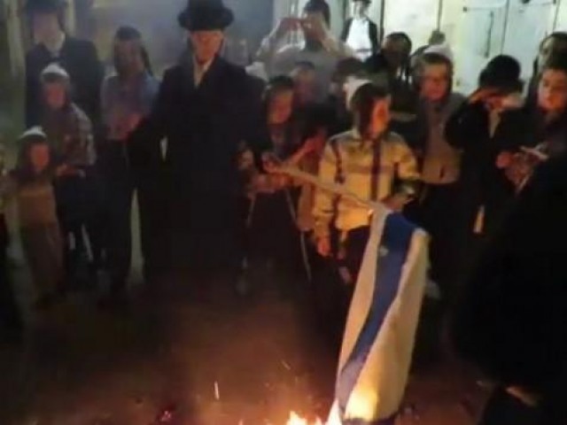 YERUSALEM, PALESTINA (voa-islam.com) - Saat orang-orang Israel di seantero negeri melakukan perayaan Hari Kemerdekaan Israel ke-69 pada hari Selasa (2/5/2017), sekelompok Yahudi ultra-Ortodoks di Yerusalem justru membakar bendera Zionis Israel.