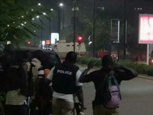 Saksi mata mengatakan orang-orang mulai berlari keluar dari kafe tersebut, sementara polisi p pasukan paramiliter terlibat dalam baku tembak dengan para pria bersenjata.