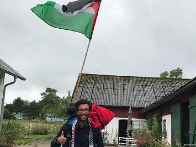Dia akan melakukan seluruh perjalanan dengan bendera Palestina di punggungnya.