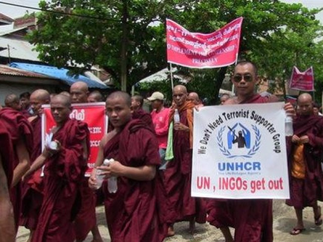 Pembentukan politik dan agama Myanmar telah dituduh mengipasi kebencian di antara tentara dan orang Burma melawan minoritas Rohingya. PBB telah menggambarkan klaim Rangoon atas "pemberontakan teroris" di negara bagian Rakhine dibesar-besarkan dengan liar.